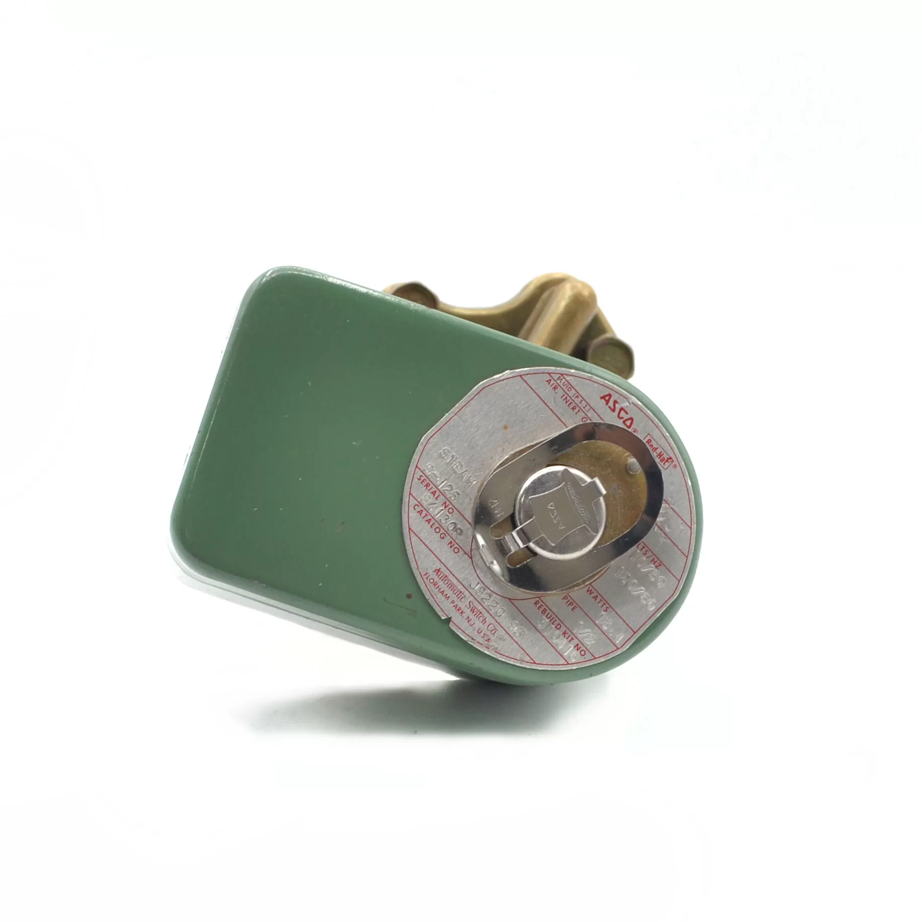 VÁLVULA SOLENOIDE ASCO 1/2″NPT 120 VAC STEAM 5-125 PSI BR. AIRE INERTE, GLP,WATER,OIL SERIE# 60879S CAT.J8220-93 N.C.